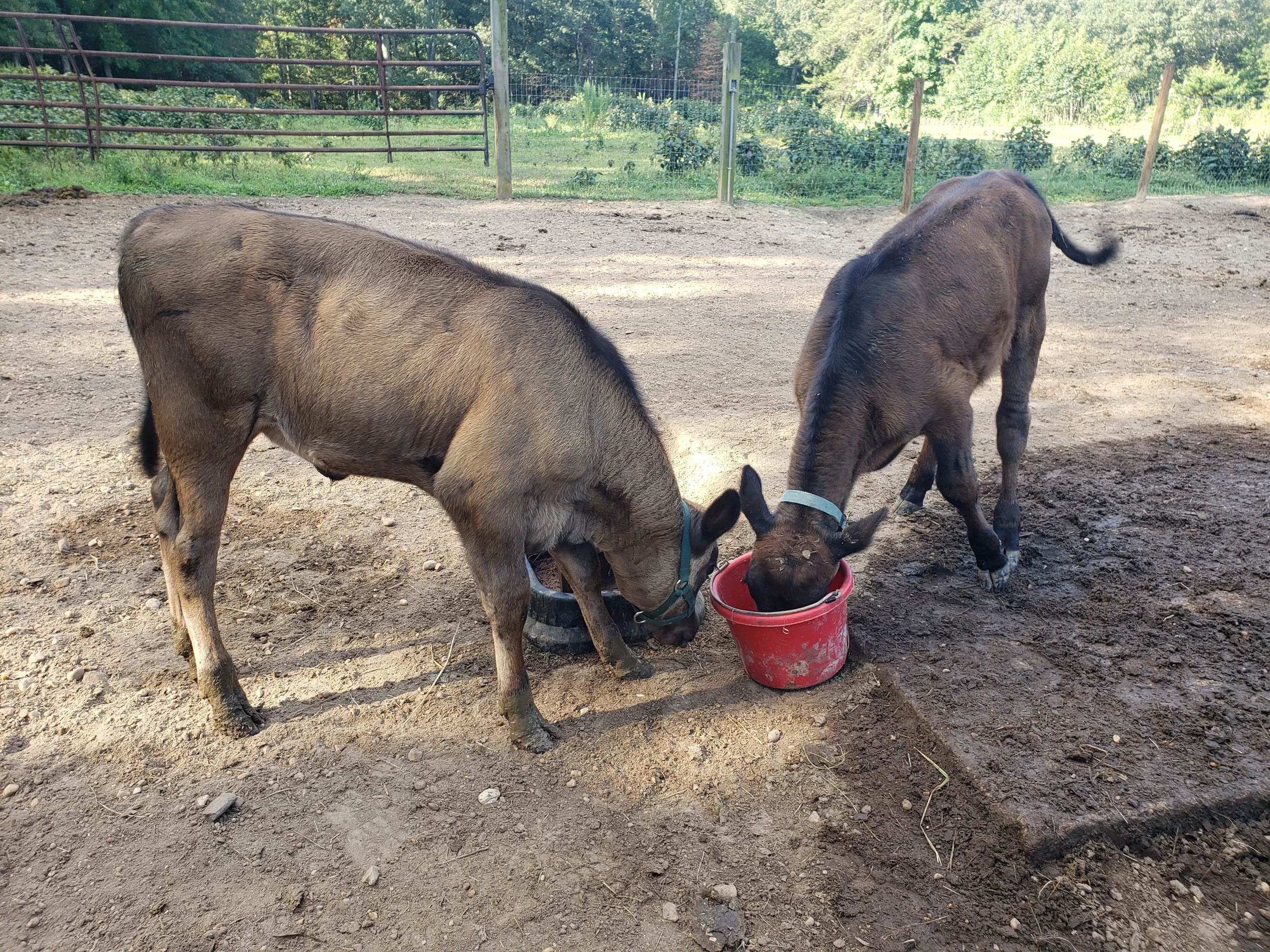 The cow’s diet consists of seasonal pasture, free access to high quality grass hay, and twice daily feedings of alfalfa, beet pulp, whole oats and sunflower seeds.